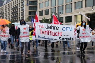 In den Diskussionen mit der Sol sind mir dann die politischen Differenzen erst richtig bewusst geworden. Für mich ist der entscheidende Unterschied die Herangehensweise an die Arbeiter*innenklasse und die ernsthafte betriebliche und gewerkschaftliche Arbeit der Sol, ob in ver.di-Gremien oder im „Netzwerk für eine kämpferische und demokratische ver.di“. In meiner kurzen Mitgliedschaft in Berlin konnte ich das schon erleben beim Eingreifen in Streiks oder bei der Initiative für eine gewerkschaftliche Demonstration gegen Haushaltskürzungen, die im Februar stattgefunden hat und deren Initiative von Sol-Mitglieder im ver.di-Vorstand ausging. Ich erlebe das ehrliche, nicht aufdringliche Auftreten der Sol gegenüber Arbeiter*innen als einen großen Unterschied zum Funken bzw. heute RKP. Die Sol steht nicht an der Außenlinie und kritisiert nur, dabei geht die Klarheit in Analyse und Programm aber nicht verloren. So eine Organisation habe ich eigentlich immer gesucht.