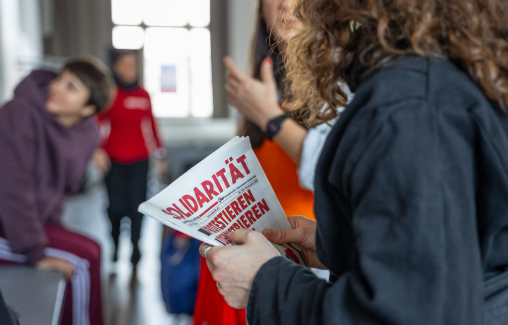 Der Tag endete mit einem Solifoto gegen den Ausschluss von Ramsis Kilani aus der Linken und vielen intensiven Gesprächen bis in den späten Abend.