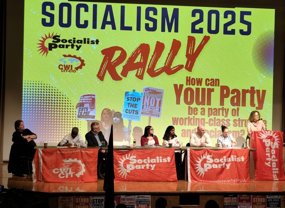 Am 14. und 15. November fand in London die Veranstaltung “Socialism 2025” statt, organisiert von der Socialist Party. Die Socialist Party ist Teil des Committee for a Workers’ International (CWI), einem weltweiten Zusammenschluss revolutionär-sozialistischer Organisationen, zu denen auch wir, die Sol in Deutschland, gehören. Die Socialist Party ist in England und Wales aktiv in Gewerkschaften, Your Party, gegen Kürzungen, in Solidarität mit den Palästinenser*innen und zu vielen weiteren wichtigen Themen und Bewegungen. Das CWI verbindet Aktivist*innen auf allen Kontinenten, die für eine sozialistische Alternative zur kapitalistischen Krise kämpfen. Zusammen wollen wir den internationalen Klassenkampf stärken und den Aufbau von revolutionären Organisationen, Massenarbeiter*innenparteien und Gewerkschaften und schließlich einer erfolgreichen sozialistischen Revolution vorantreiben. So nahmen am Socialism 2025 fast 1.000 Teilnehmende aus verschiedenen Teilen der Welt teil, über 20 davon reisten aus Deutschland an.