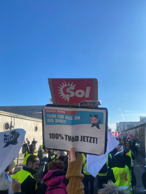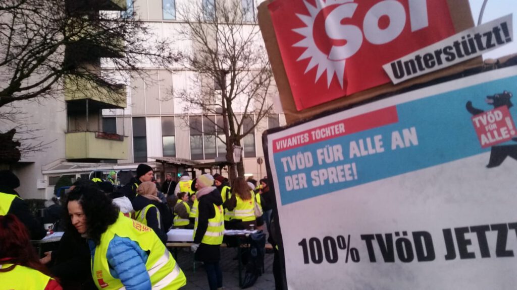 Wir unterstützen den entschlossenen Kampf der Vivantes Töchter Beschäftigten und ihre Streiks im Februar, um 100 % TVÖD zu erreichen und ihre Forderung nach 2000 € Einmalzahlung. Wir glauben, dass dieser Kampf über einen rein wirtschaftlichen hinaus geht, sondern im Grundsatz darum geht, dass öffentliche Dienstleistungen dafür gemacht sein müssen, die öffentlichen Bedürfnisse zu erfüllen und nicht profitgeleiteten Interessen des Kapitalismus.