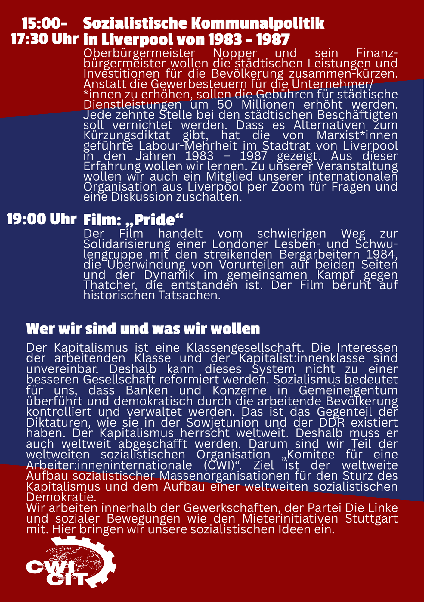 Wo? Linkes Stadtteilzentrum, Liebenzeller Straße 1, Stuttgart – Bad Cannstatt (Nähe U2- Haltestelle Daimlerplatz)